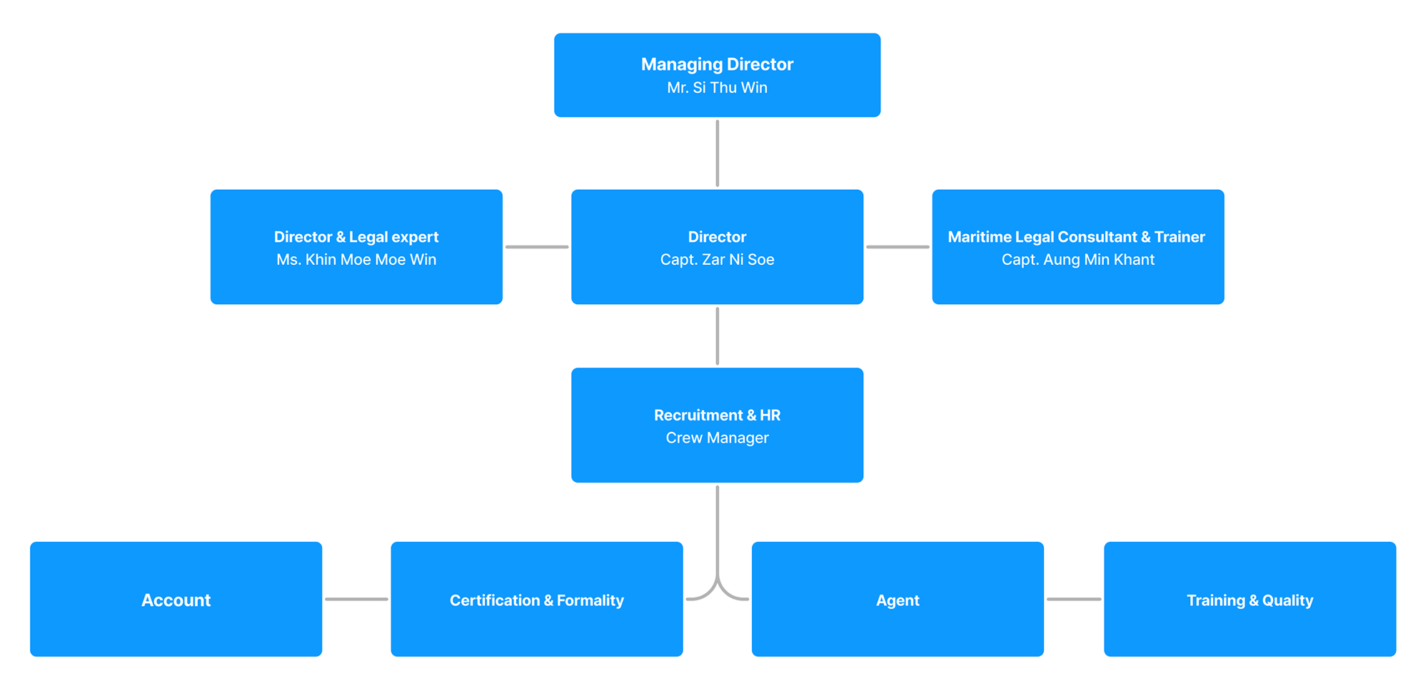 Our mission is to provide Myanmar Qualified and Skillful Seafarer at international marine industry by ensuring to serve on board the ship with good performance and the professional growth of maritime talents. We prioritize the four pillars such as SOLAS, MARPOL,STCW and MLC including any other regulations and national regulations & compliances and ethical practices in all aspects of crew management, fostering a positive impact on the maritime industry and the communities we serve.